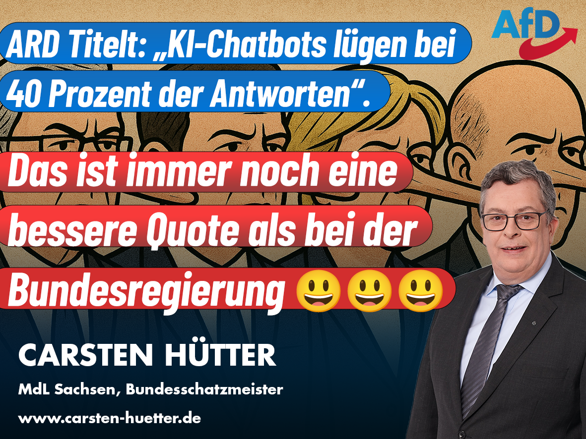 Die Bürger wollen, dass endlich wieder Recht und Ordnung durchgesetzt werden – In Sachsen aber leider Fehlanzeige: Im ersten Halbjahr 2025 wurden lediglich 43 von 1.237 ausländischen Intensivtätern abgeschoben. Wir haben dazu immer noch über 11.000 Ausreisepflichtige im Freistaat, die vom Steuerzahler Monat für Monat alimentiert werden. Das ist inakzeptabel – und solche klaren Worte würde ich mir auch von einem Ausländerbeauftragten wünschen!