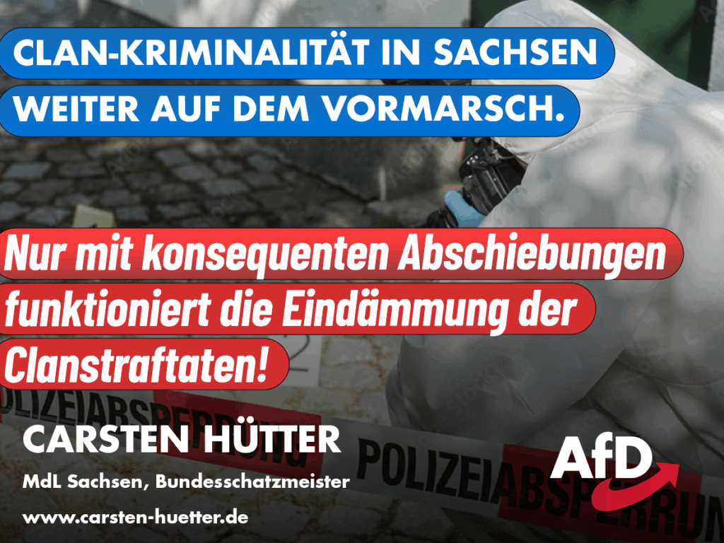 Mich überrascht die bisherige Entwicklung im Freistaat nicht, denn auch in Sachsen hat man viel zu lange bei kriminellen Angehörigen von Großfamilien und ethnisch abgeschotteten Subkulturen weggeschaut. Erst auf Druck der AfD wurde hier leicht umgesteuert – nach Jahren der Warnungen. Es muss aber noch sehr viel mehr passieren, um Eigentum und Gesundheit der Bürger konsequent zu schützen. Dazu zählen auch durchaus einfache Maßnahmen, wie das Aussprechen von Besitzverboten bei erlaubnisfreien Waffen gem. § 41 Waffengesetz. Davon haben unsere Sicherheitsbehörden bei Clanmitgliedern wohl noch keinen Gebrauch gemacht. Auch sind ganz offensichtlich noch nicht einmal die Intensivstraftäter unter ihnen abgeschoben worden. Das wäre das Mindeste, was man von unserer Regierung erwarten dürfte.“
