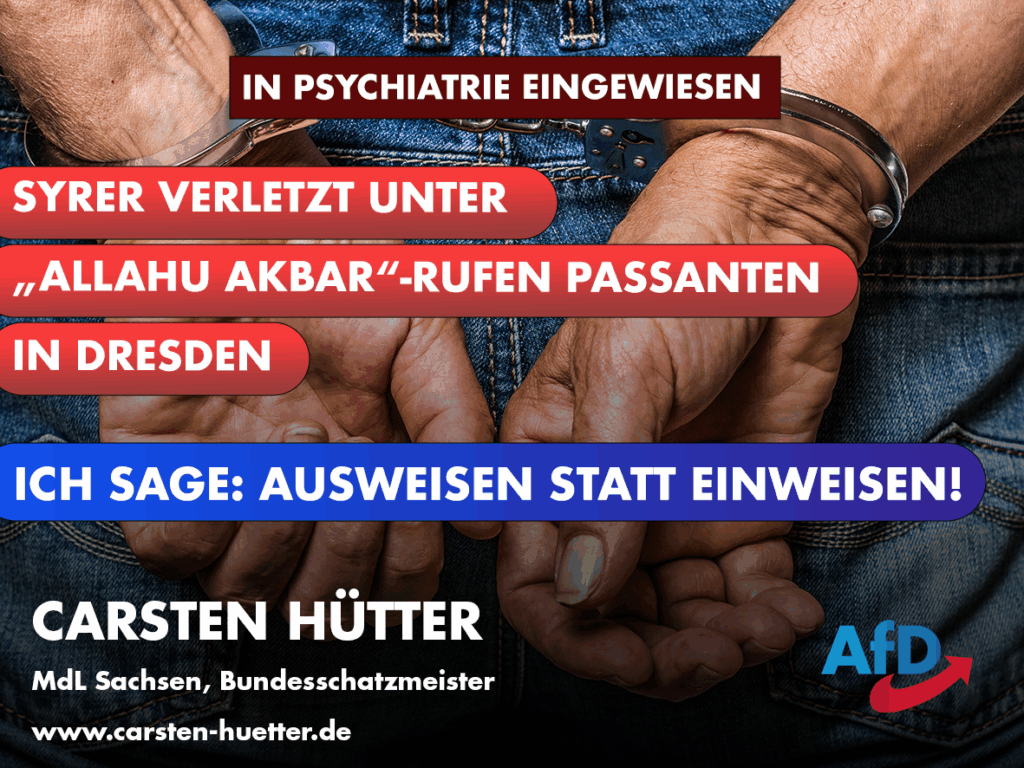 Carsten Hütter, sicherheitspolitischer Sprecher der AfD-Fraktion im Sächsischen Landtag, erklärt dazu: